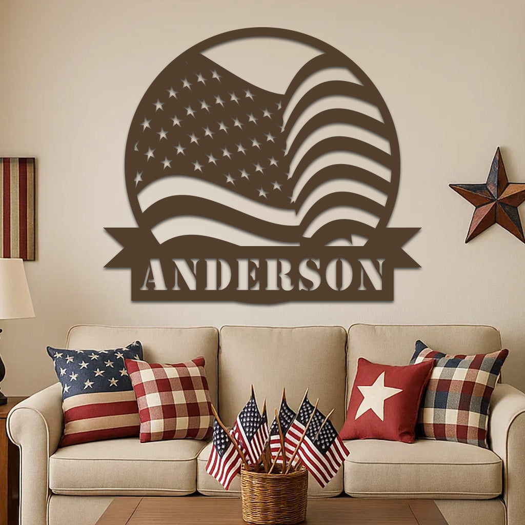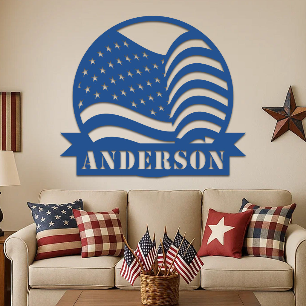 Celebrate your patriotism with our custom American flag name sign, designed for both indoor and outdoor use. Crafted from durable 16-gauge steel and finished with premium-grade paint, this sign offers lasting resilience against the elements. Its striking design makes it an ideal accent for any room or outdoor space, allowing you to showcase your love for the country in style. Whether you're looking to enhance your home decor or seeking a unique gift, this sign serves as a perfect choice.