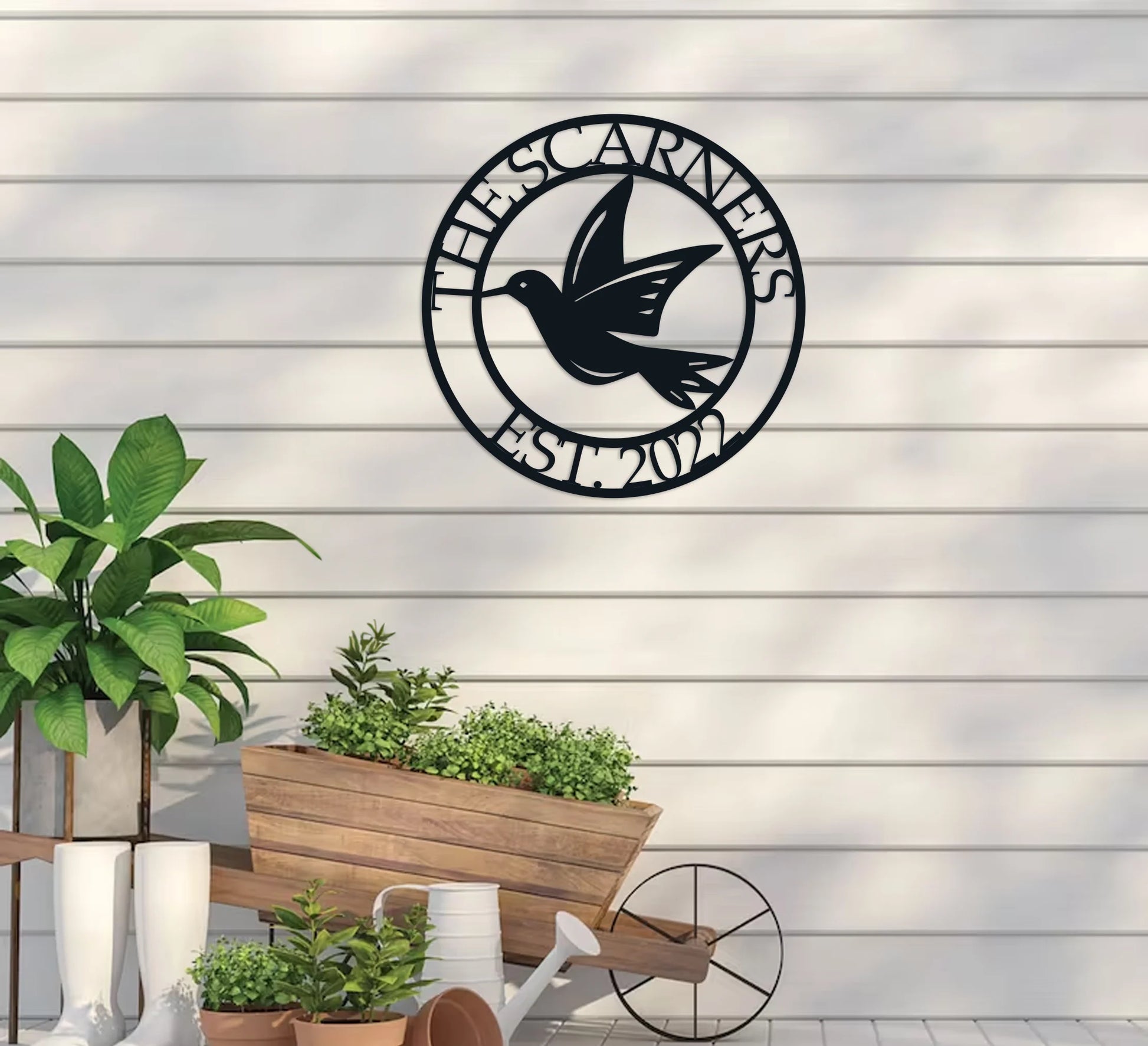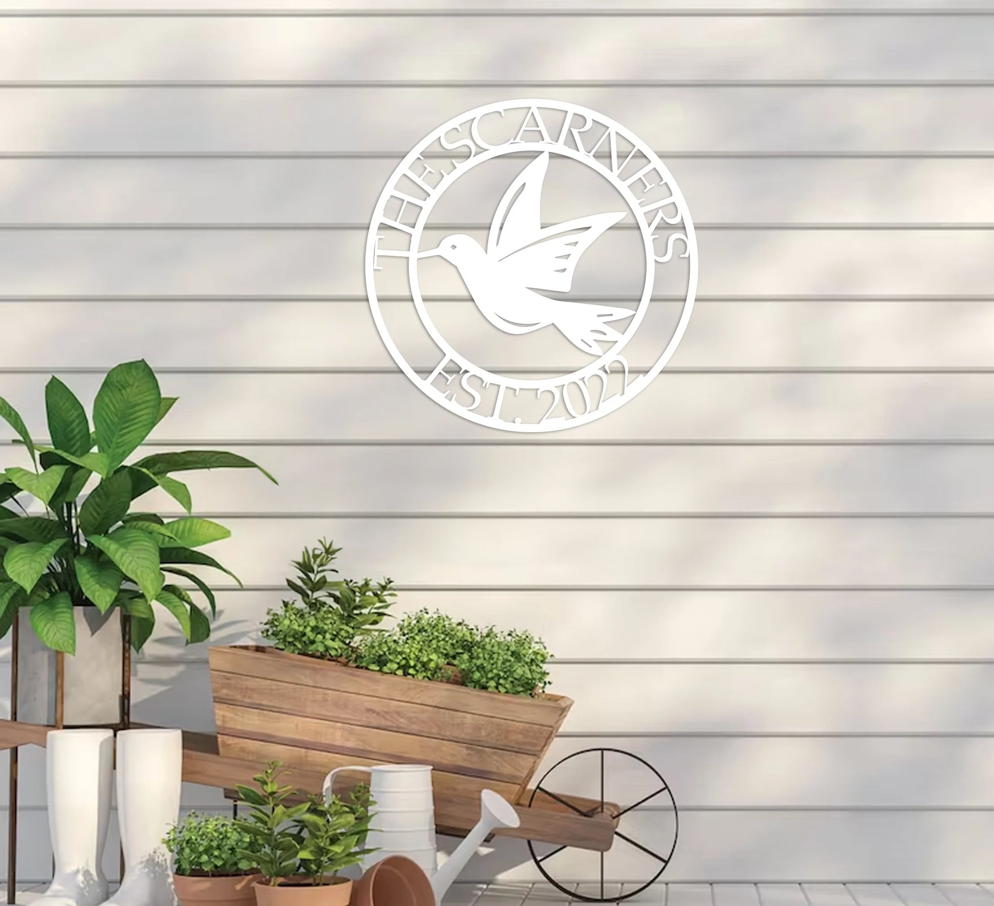 This customizable Bird Sign allows you to add a personal touch with your chosen name and year, making it an ideal decoration for both indoor and outdoor spaces. Constructed from sturdy 16-gauge steel and coated with high-quality paint, this sign ensures durability while adding a decorative accent to your home or garden. Its elegant design complements a variety of settings, whether placed in a cozy living room, a beautiful garden, or an inviting entryway.