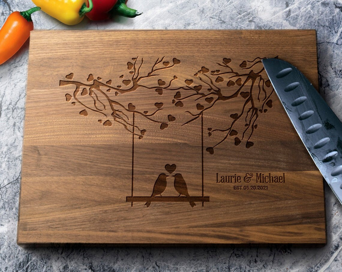 Personalized Cutting Board Love Birds