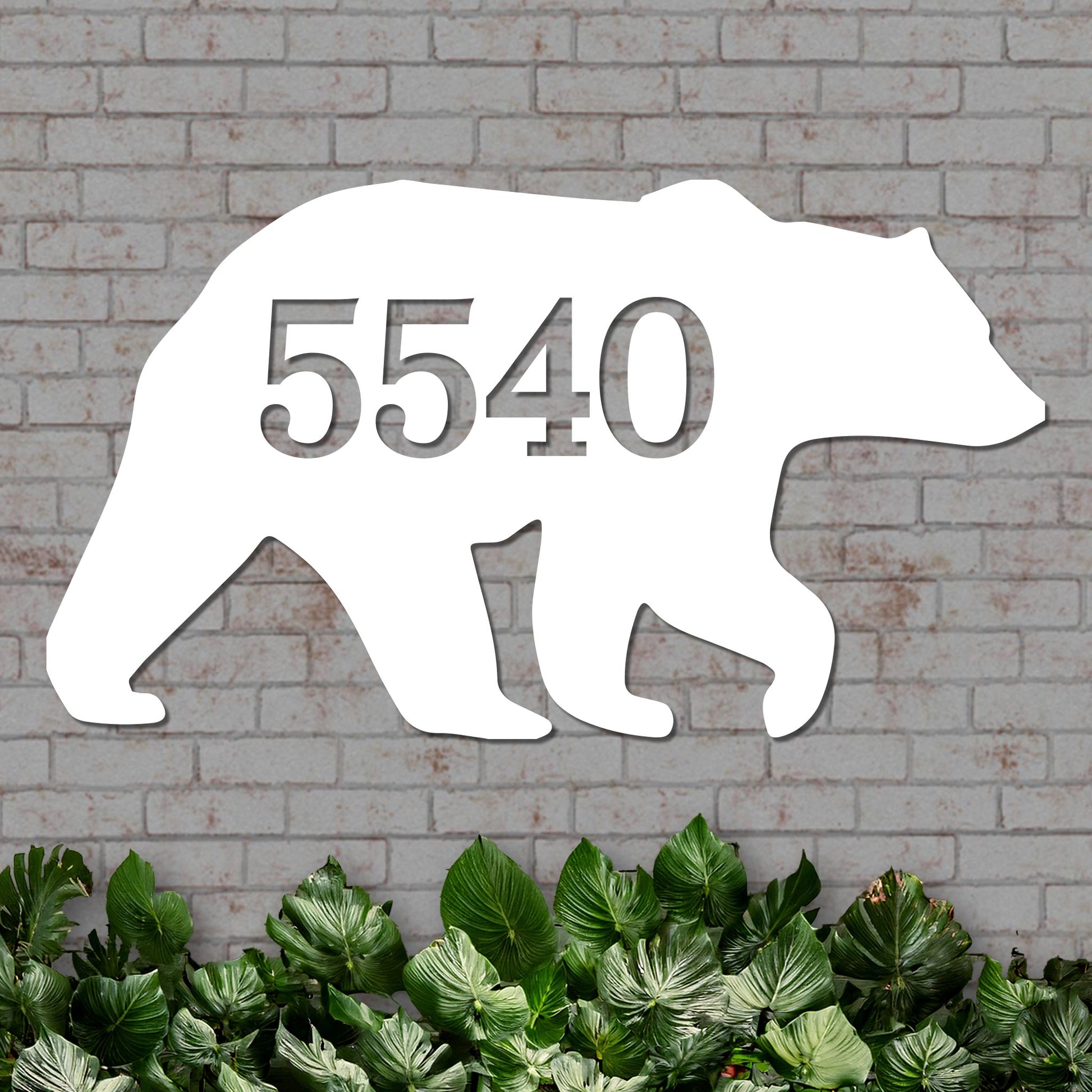 Transform the look of your home with our beautifully crafted house number sign featuring a decorative bear design. Made from sturdy 16-gauge steel, this sign is built to endure various weather conditions while retaining its appealing aesthetic. Each sign is carefully painted with high-quality, premium-grade paint to ensure enduring vibrancy that stands out.