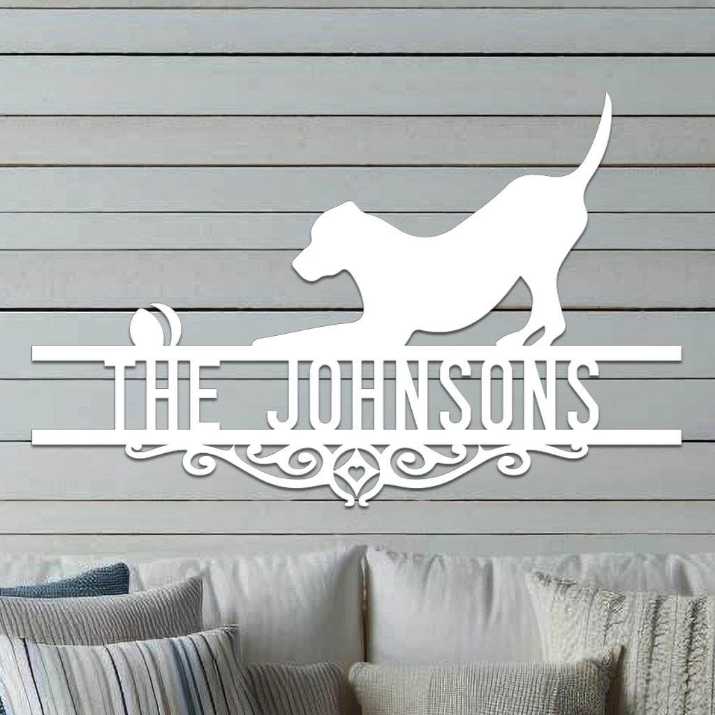 Enhance your home decor with our Dog with Ball Family Name Sign, designed for both indoor and outdoor use. Crafted from durable 16-gauge steel, this sign is coated with premium-grade paint to ensure longevity and resistance to the elements. Its charming design makes it an ideal addition to any room, adding a personal touch that reflects your family's love for pets.