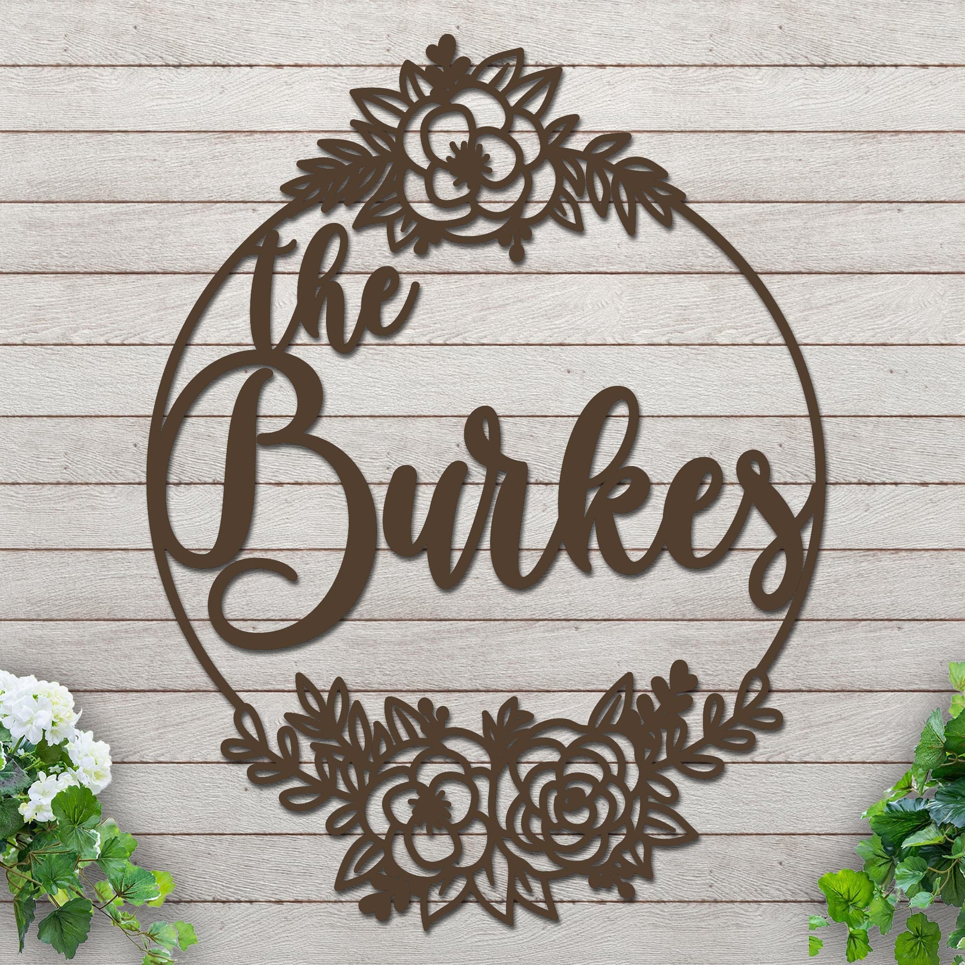 Whether you're looking to add a personal touch to your living room, bedroom, or garden, this Family Name design with roses serves as a unique decoration that showcases your personal style. If you have any inquiries regarding our custom options, our dedicated customer service team is ready to assist you from 8 AM to 11 PM EST.