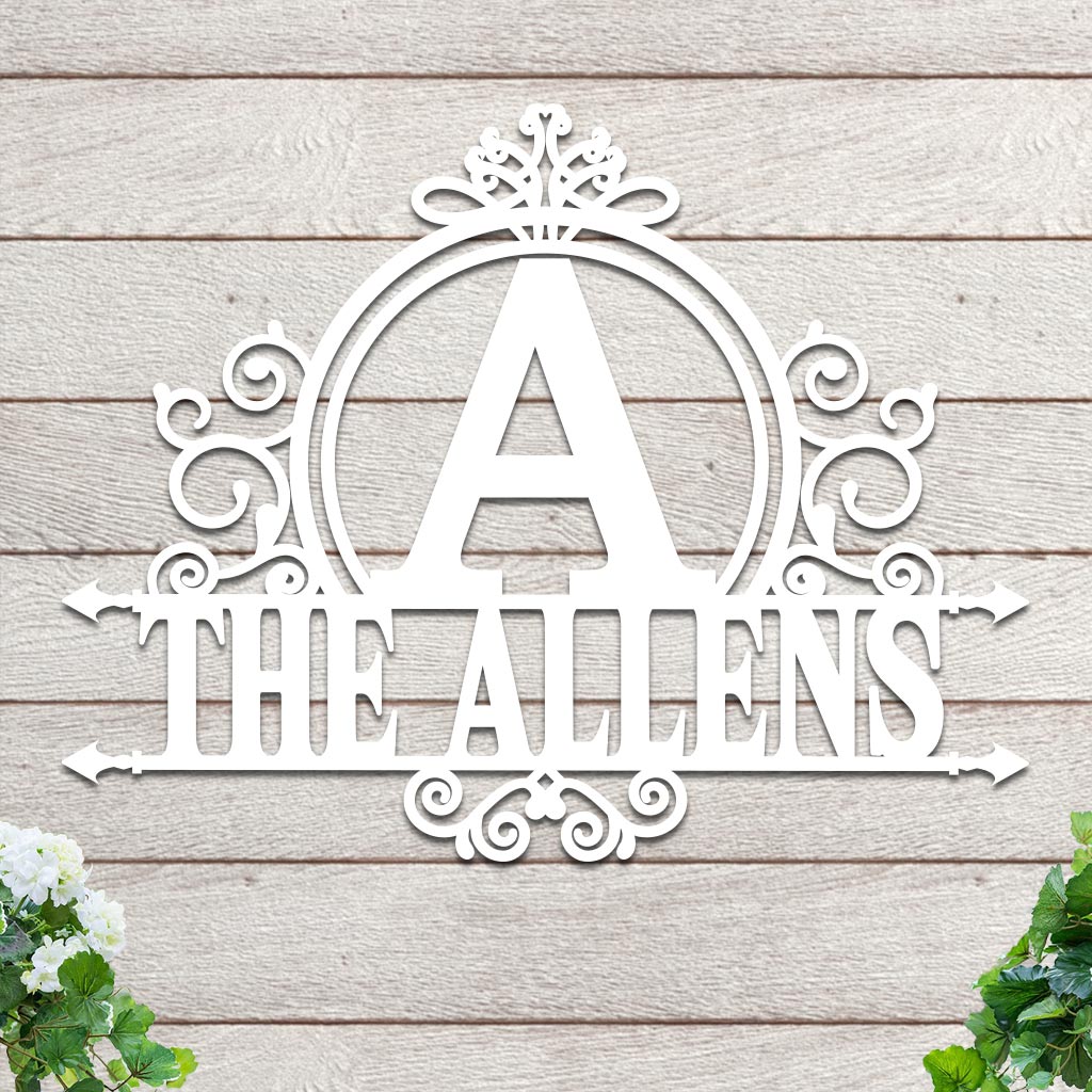 The Initial Scroll Family Name Sign is versatile, designed for both indoor and outdoor use. Crafted from 16-gauge steel, each sign is finished with premium-grade paint that ensures durability, making it a lasting decorative piece for any space. These signs are perfect for enhancing the ambiance of your home, whether displayed in a living room, entryway, or garden.