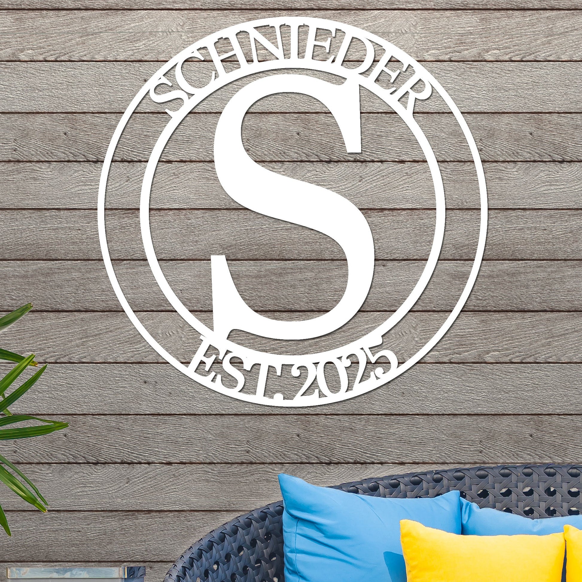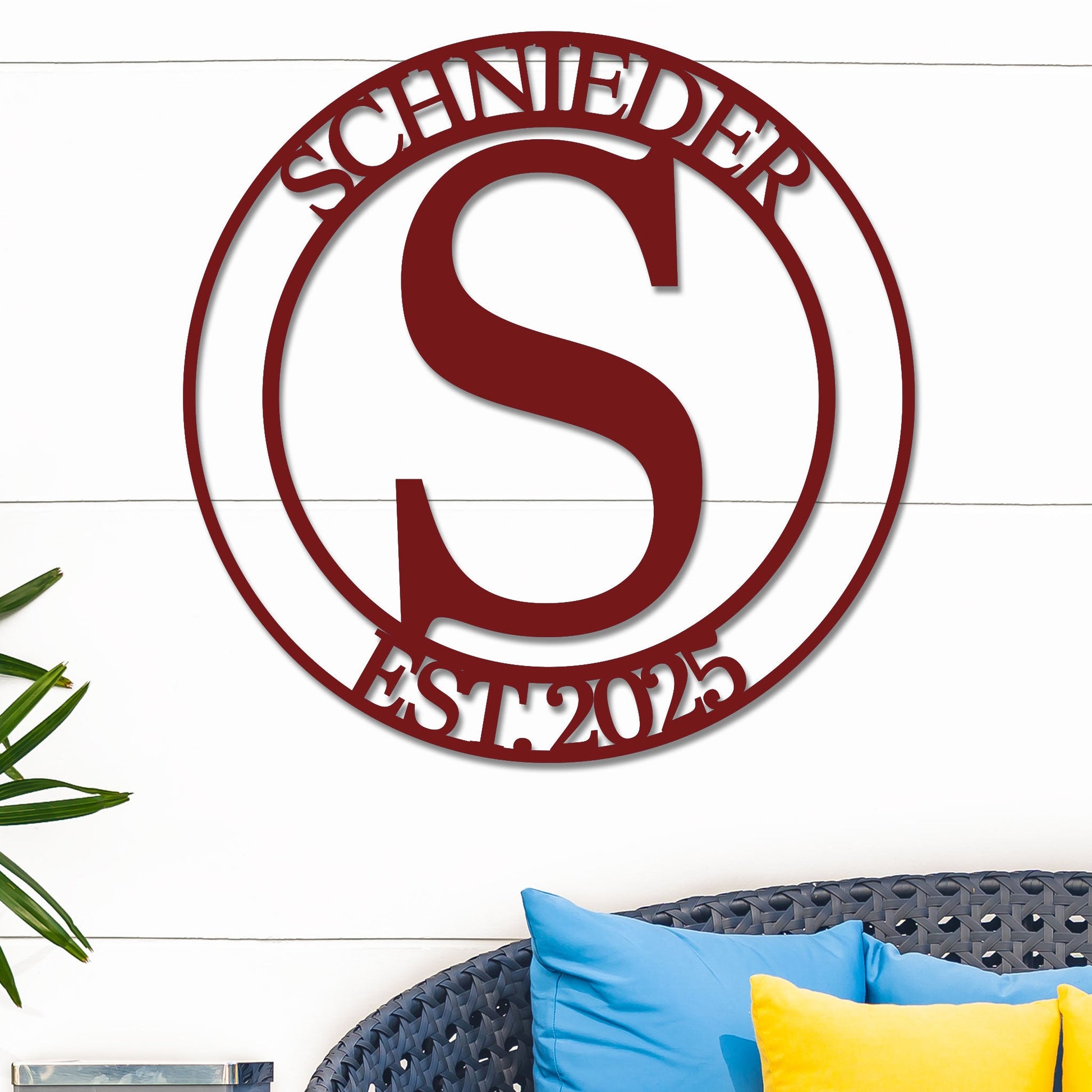 Transform your living space with our personalized Monogram Metal Sign, showcasing your name and year. This versatile piece is suitable for both indoor and outdoor settings, making it a great addition to any room or garden. Constructed from robust 16-gauge steel, it is designed to endure various weather conditions while retaining its striking appearance.