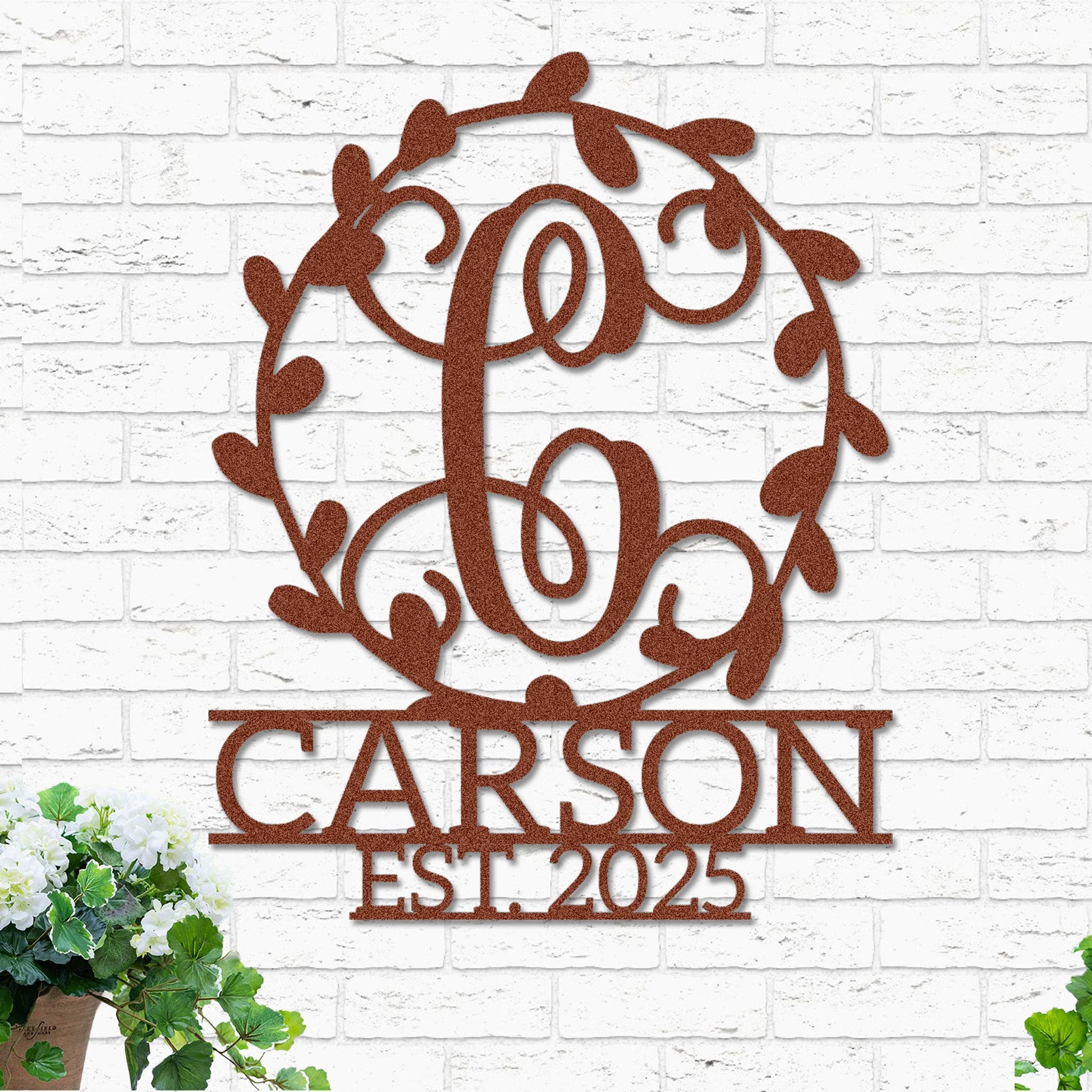 Enhance your space with our custom monogram wreath featuring your name and established year, perfect for both indoor and outdoor use. Crafted from durable 16-gauge steel, this wreath is designed to withstand the elements while retaining its beauty. Each piece is finished with premium-grade paint, ensuring long-lasting vibrancy and charm.