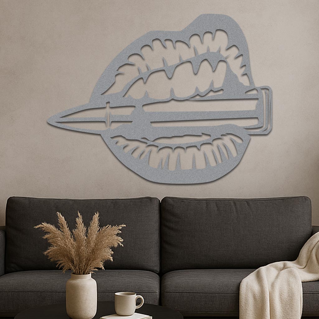 The Mouth Chewing Bullet Sign is a distinctive piece of decor designed for both indoor and outdoor settings. Made from durable 16-gauge steel, this sign is built to resist various weather conditions while providing a unique style to any environment. Each sign features a premium-grade paint finish that ensures long-lasting vibrancy and protection against fading.