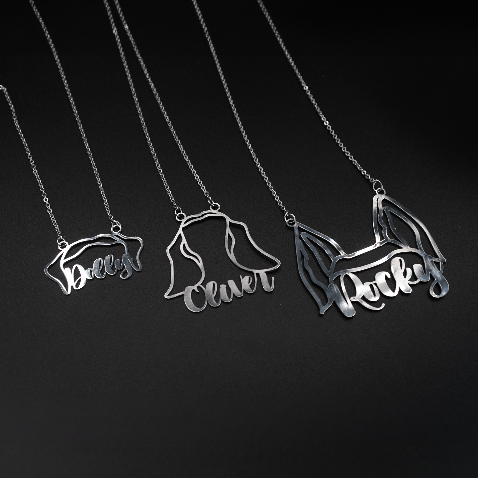 Introducing our personalized Dog Name Necklaces, a unique and heartwarming way to celebrate the special bond between you and your furry friend. Crafted with precision and care, each necklace is a bespoke masterpiece, showcasing your dog's name in a beautifully designed pendant. Whether you want to keep your beloved pet close to your heart or surprise a fellow dog enthusiast, these necklaces are a stylish and sentimental accessory.