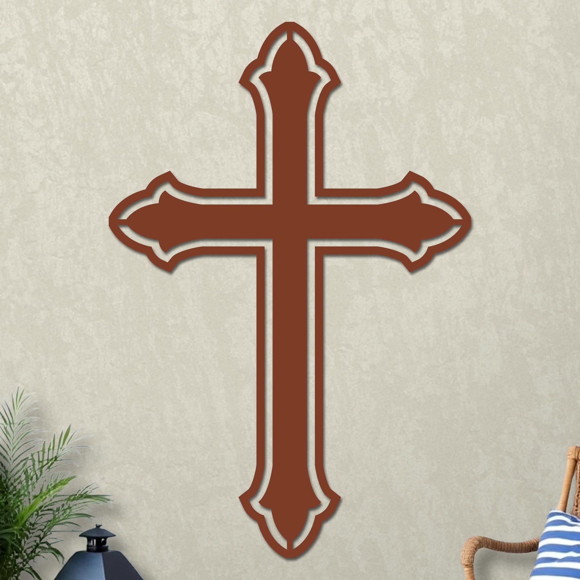 The Simple Cross is a versatile decorative piece suitable for both indoor and outdoor settings. Constructed from 16-gauge steel, it is designed to withstand the elements while maintaining its aesthetic appeal. Each cross is meticulously painted with premium-grade paint, ensuring durability and long-lasting color that enhances any space.