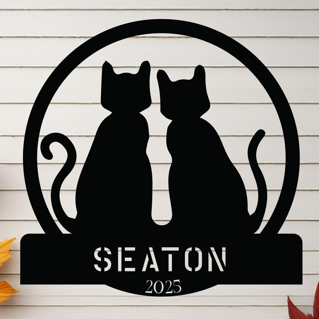 Two Cats w Name Sign
