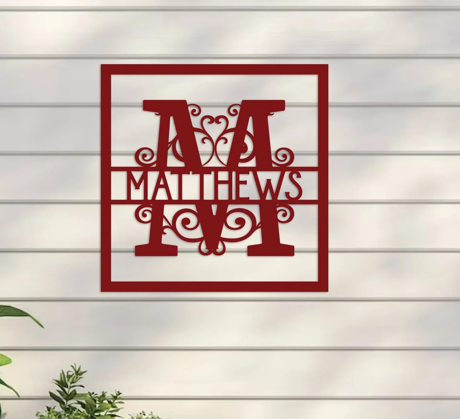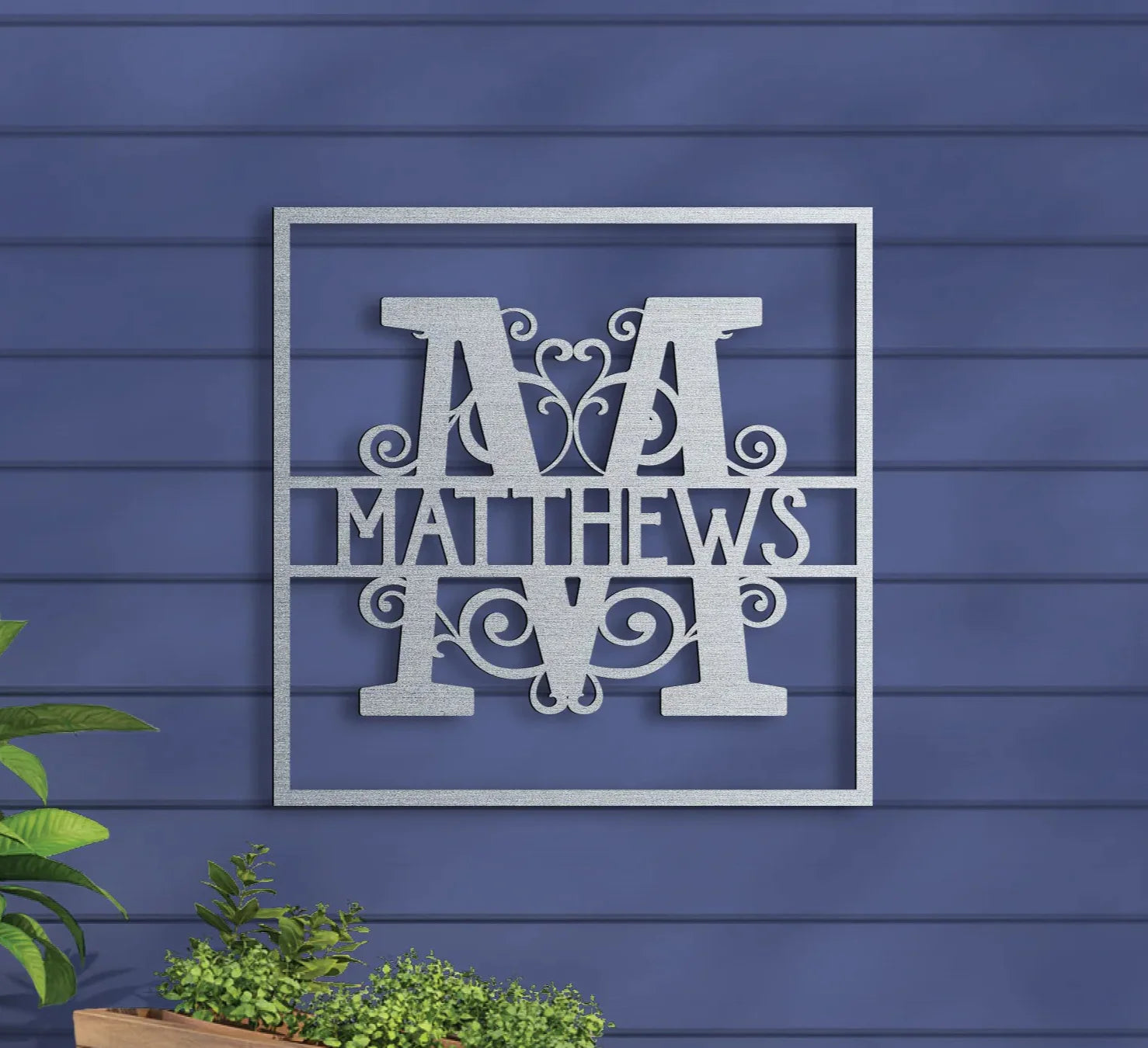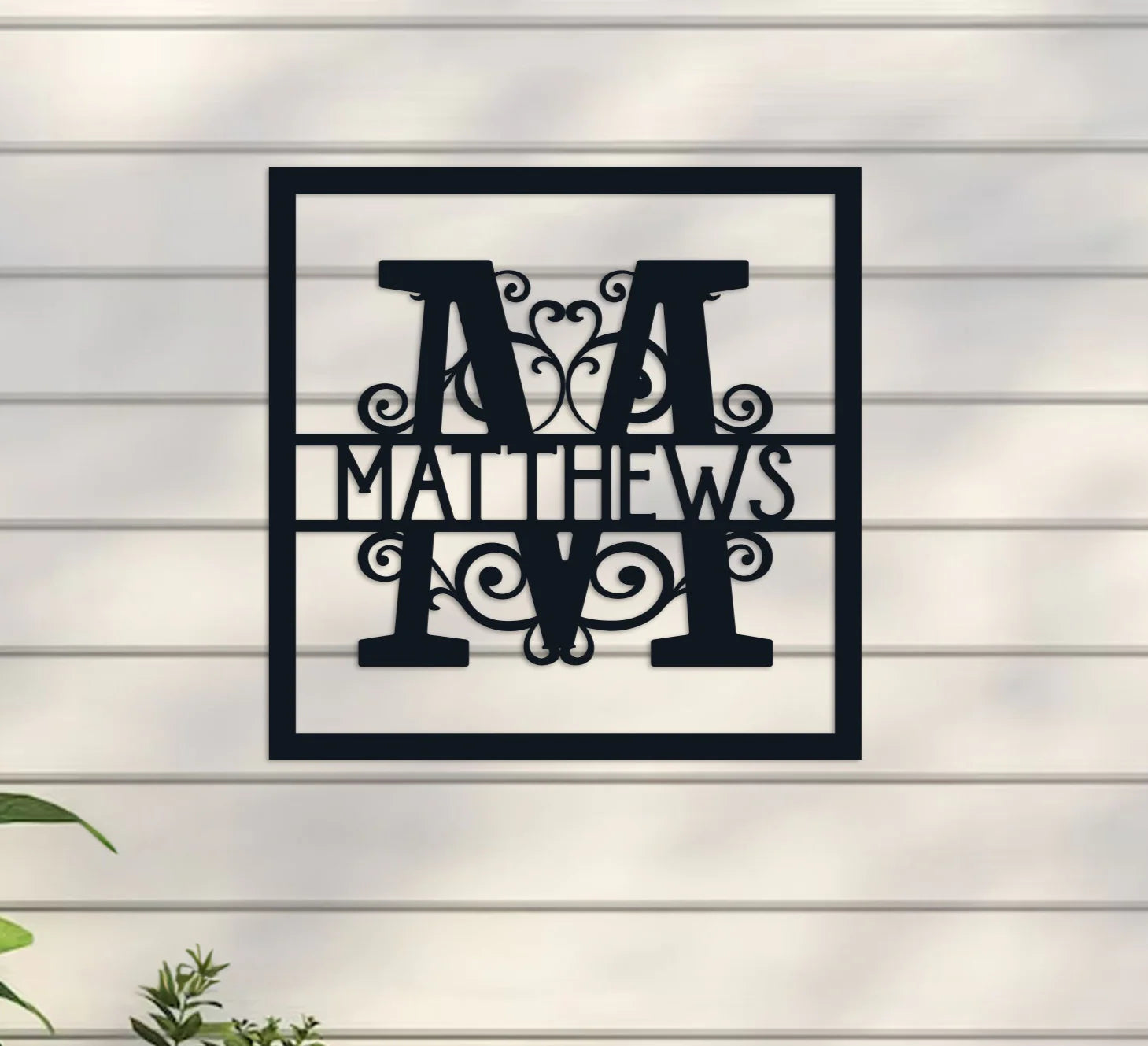 The Vined Monogram in Square Sign is a versatile decorative element suitable for both indoor and outdoor settings. Crafted from robust 16-gauge steel, this sign is designed to endure various weather conditions while maintaining its sophisticated look. Each sign is carefully coated with premium-grade paint, ensuring a durable finish that resists fading over time.